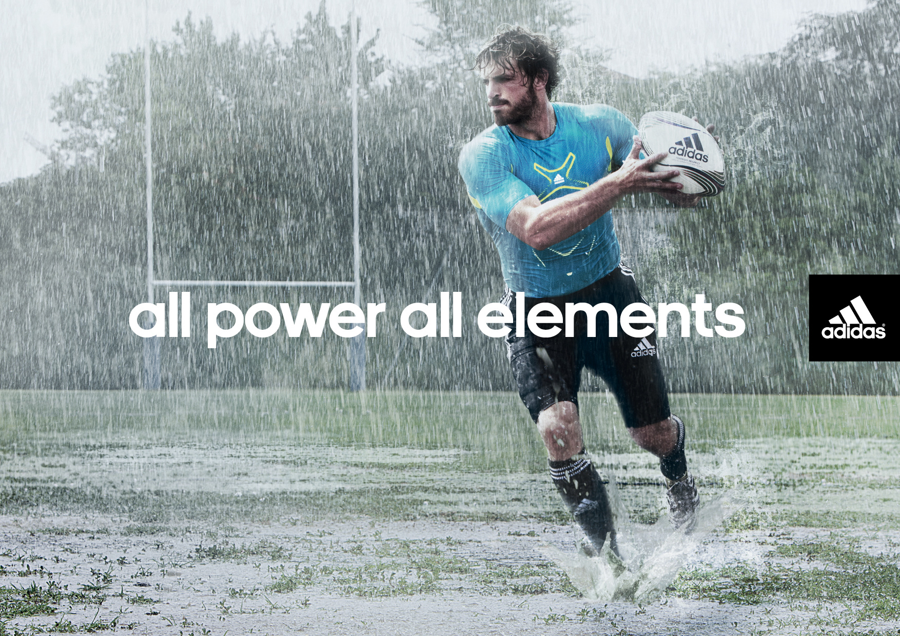 Print campaign to launch new Techfit clothes series, showing its resistance to all physical and climate elements during the Rugby World Cup in 2011.